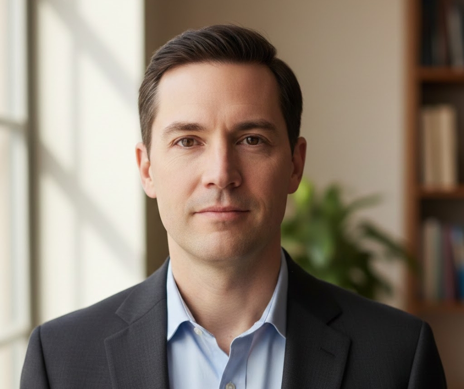 "Corporate professional portrait, person in business attire, confident posture, modern office background softly blurred, even studio lighting, neutral professional expression, executive headshot style, sharp focus on eyes"